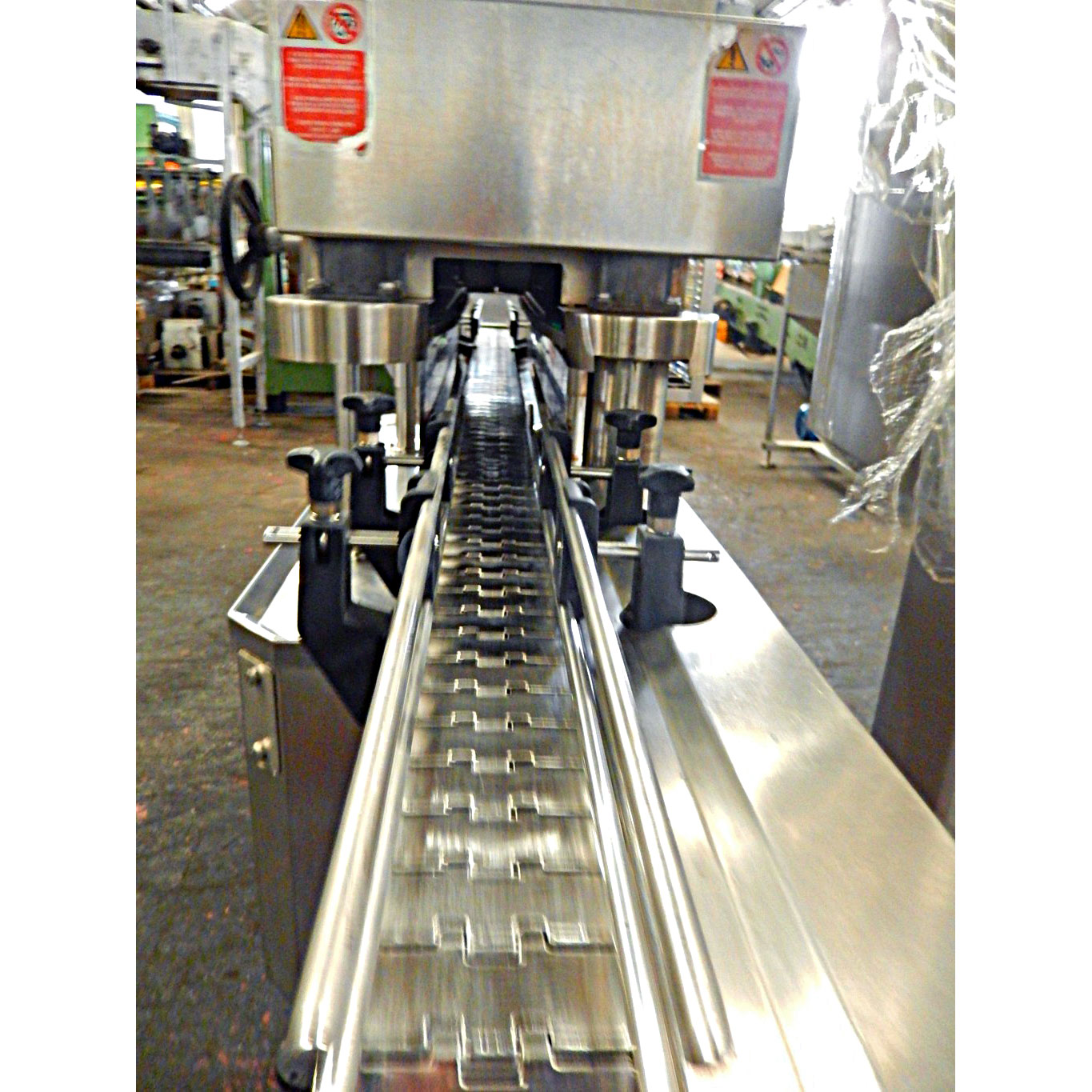 – steam injection in order to heat the inside of the caps , help the closing and to create the vacuum into the containers closed, provided of stainless steel hoods positioned in appropriate sites to extract the exceeded steam vapours